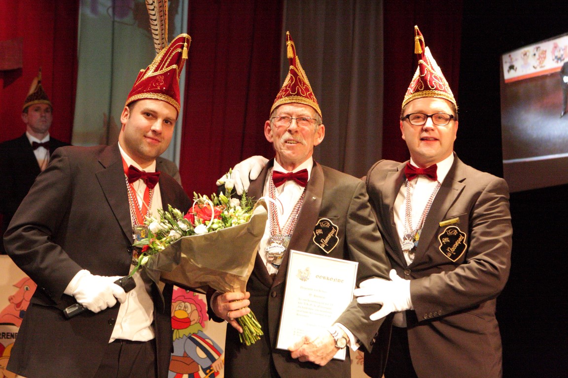 Er was die avond een verrassing voor Wim Huisman. Hij zet zich al 47 jaar in voor het carnaval in Angeren. Hij heeft jarenlang in het bestuur gezeten, en werkt al 47 jaar mee aan het maken van het mooiste boekje van Angeren; Het Keuje.  Voor al zijn werk werd hij bedankt en benoemd tot erelid van de vereniging.
