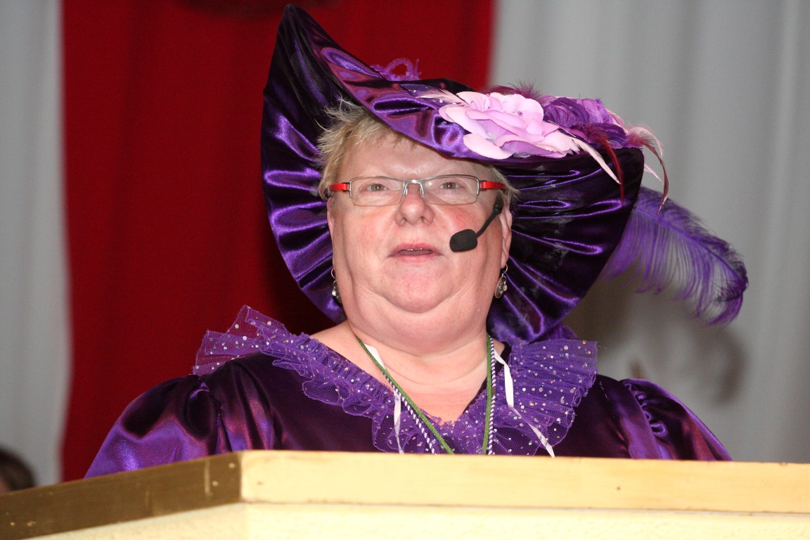 Het huussens mins kwam deze avond in Angeren een geweldige buut doen voor het prinsenpaar. Zij is uniek in haar buut, en kreeg het publiek aan de lachende hand.