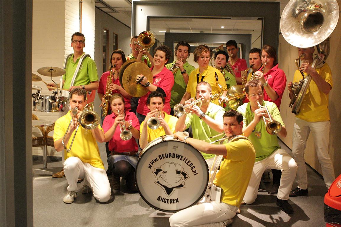 Toen het programma was afgelopen gingen de Deurdweilers nog een drie kwartier door in de zaal en op de gang. Tja, de energie van veelal stil op het podium zitten moest er nog even uit. Daarna weer op krachten komen bij de prins thuis. Wederom dank voor de heerlijke frikandellen. Maar zonder klank geen drank (aldus ZDH Geert) dus ook daar werd er weer even getoeterd.