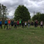 De zondagochtend begon met koffie en toen kwam er ineens een heuse bootcamp-trainer ons gebouw binnen. Jawel, de nog brakke lichamen werden een uur lang vol in actie gezet door Harry. Alles voor de nieuwe show!