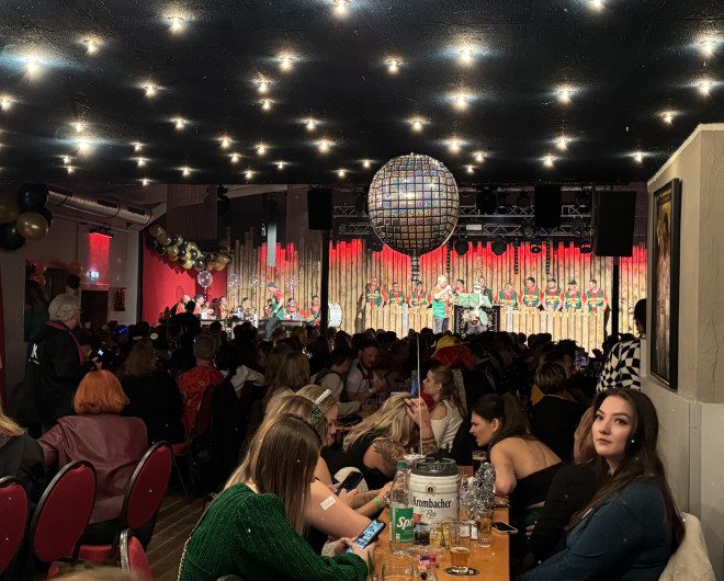 Maar het werd nog beter! Martijn, altijd klaar voor een verrassing, pakte de microfoon en sprak het publiek toe in zijn beste Duits. Het zorgde meteen voor een extra lach en wat fijne interactie. Na Ein Prosit, Zigge zagge en 1000 traumen kregen we de menigte helemaal mee.
