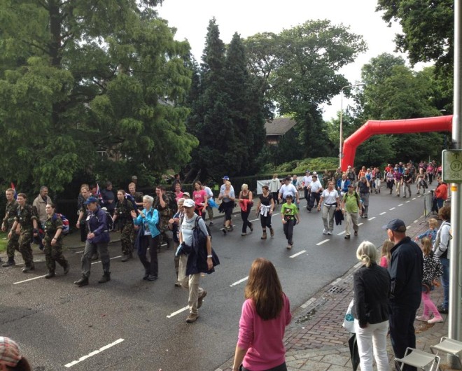 Vanochtend gingen er een heleboel wekkers erg vroeg af. Niet alleen bij de 40.000 wandelaars van de vierdaagse, maar ook bij de Deurdweilers. Op verzoek van de gemeente Lingewaard werd er namelijk in Bemmel gespeeld om de lopers een duwtje in de rug te geven. En dat was wel nodig ook, want vooral in het begin rond 5:30 viel het water met bakken uit de lucht.